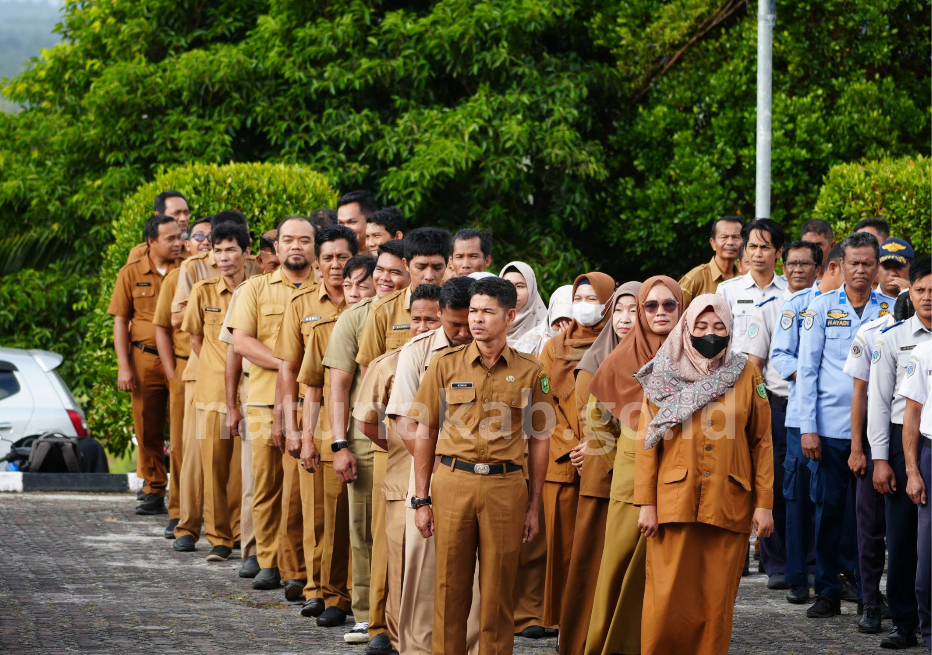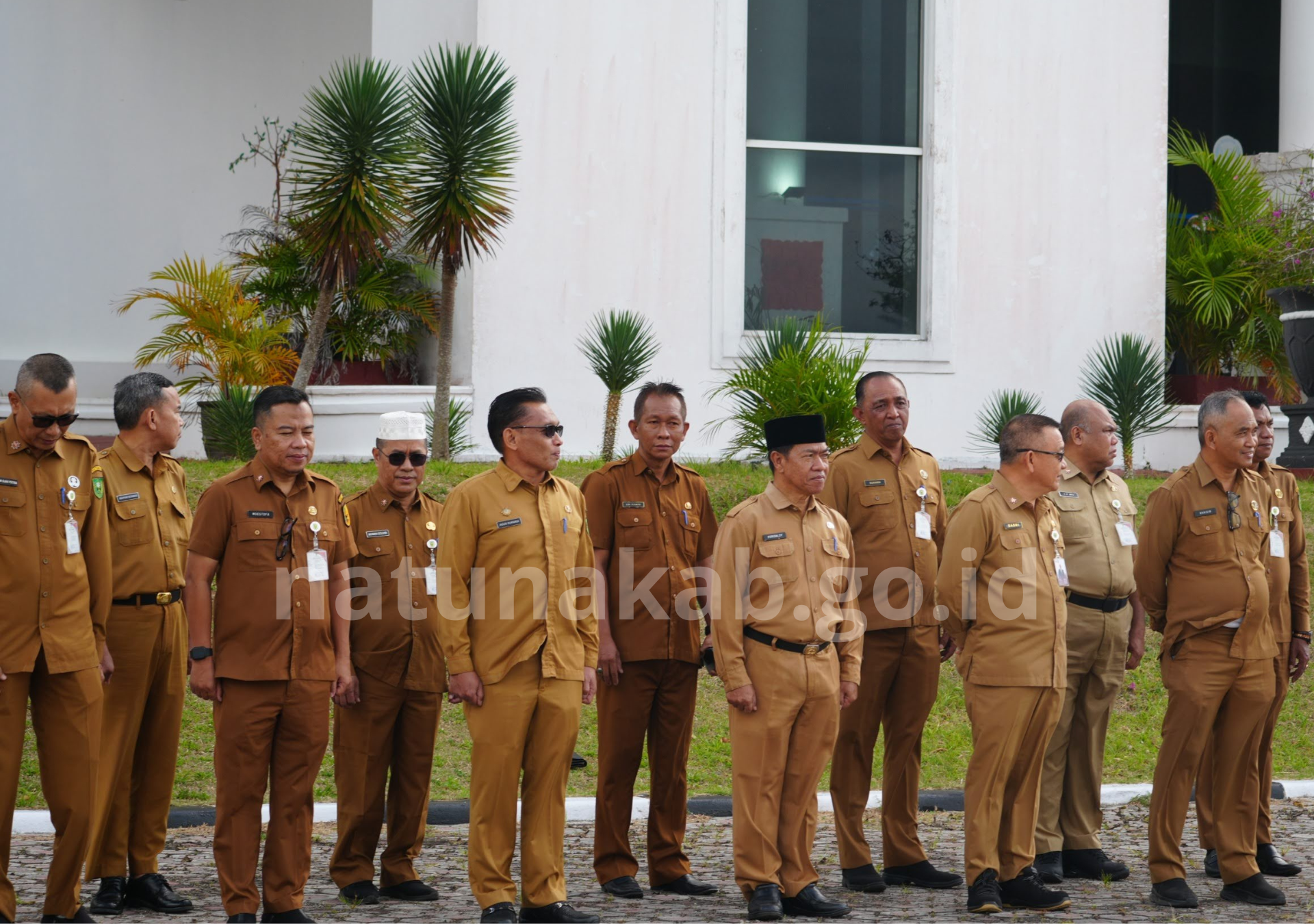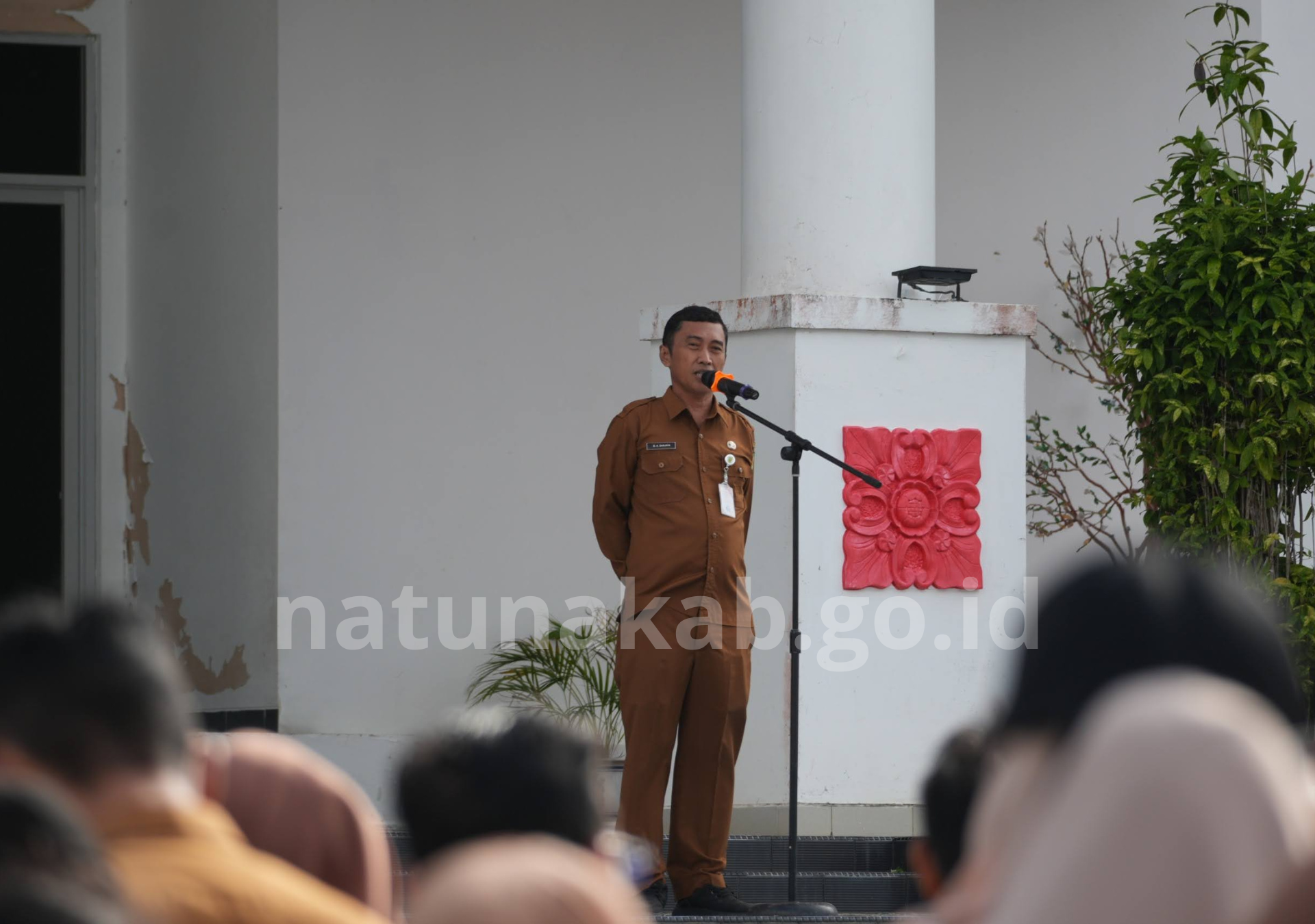 WartaKominfo – Pemerintah Kabupaten Natuna melaksanakan kegiatan apel pagi bersama di lingkungan Pemerintah Kabupaten Natuna yang berlangsung di Halaman Kantor Bupati Natuna, Bukit Arai, Senin (02/02) pagi. Apel dipimpin oleh Kepala Badan Kepegawaian dan Pengembangan Sumber Daya Manusia (BKPSDM) Kabupaten Natuna, Muhammad Alim Sanjaya, S.IP., MPP. Kegiatan apel diikuti oleh para Aparatur Sipil Negara (ASN) yang berkantor di kawasan Kantor Bupati sebagai bagian dari upaya penguatan kedisiplinan dan peningkatan kualitas kinerja aparatur.