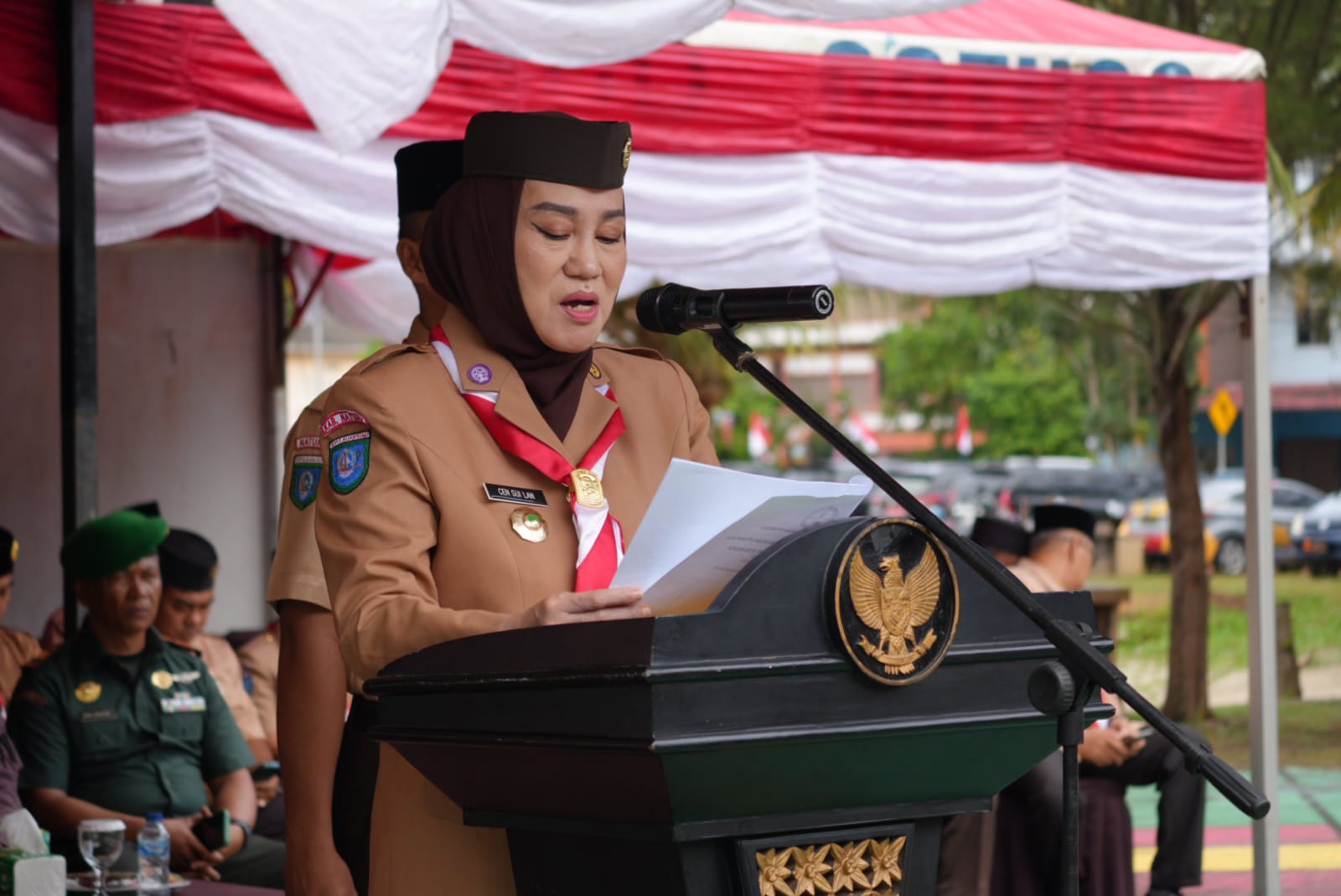 Dalam amanatnya, Bupati Cen Sui Lan membacakan sambutan Ketua Kwartir Nasional Gerakan Pramuka Tahun 2025, yang menegaskan bahwa Gerakan Pramuka merupakan wadah pembinaan generasi muda yang mampu membentuk karakter, menanamkan disiplin, dan membangun semangat pengabdian bagi masyarakat, bangsa, dan negara.