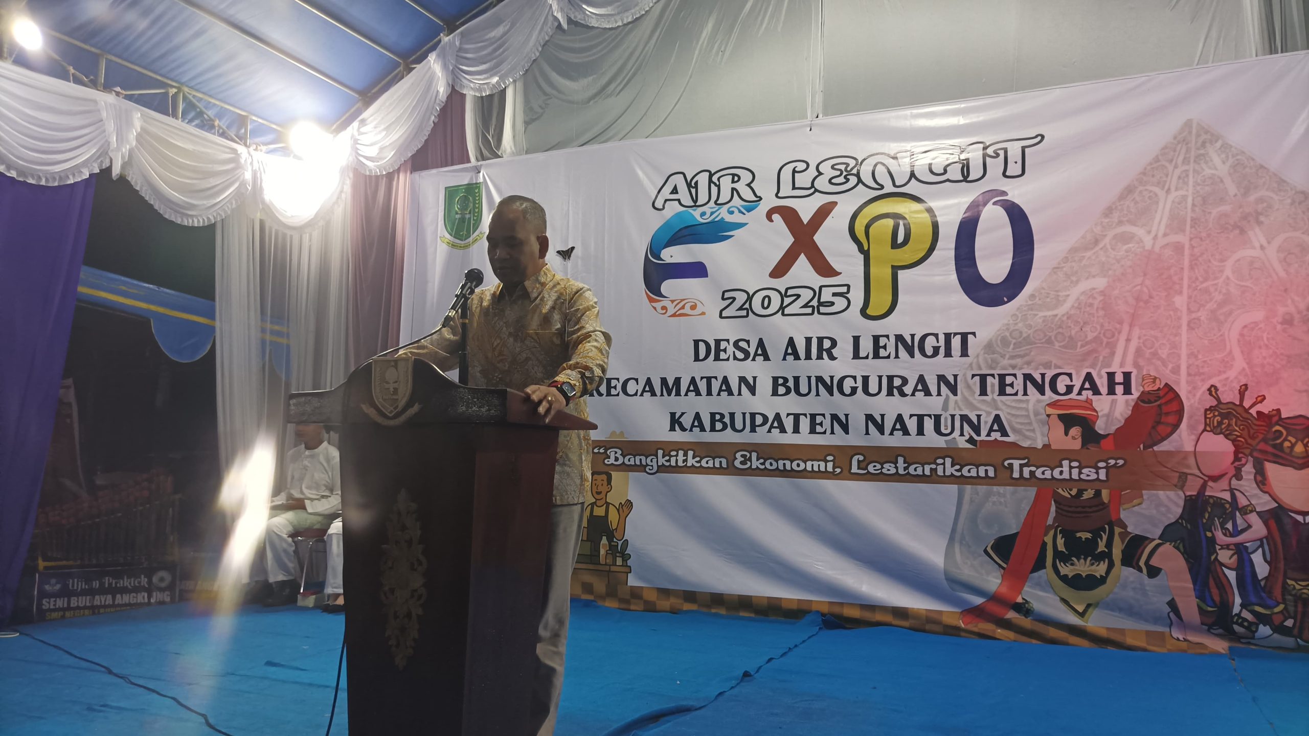 Camat Bunguran Tengah, Suhendri, dalam sambutannya menyampaikan rasa terima kasih kepada seluruh pihak yang telah mendukung terselenggaranya acara tersebut. Ia menegaskan, Air Lengit Expo dirancang untuk menampilkan beragam potensi Desa Air Lengit, mulai dari ekonomi UMKM hingga kesenian masyarakat.