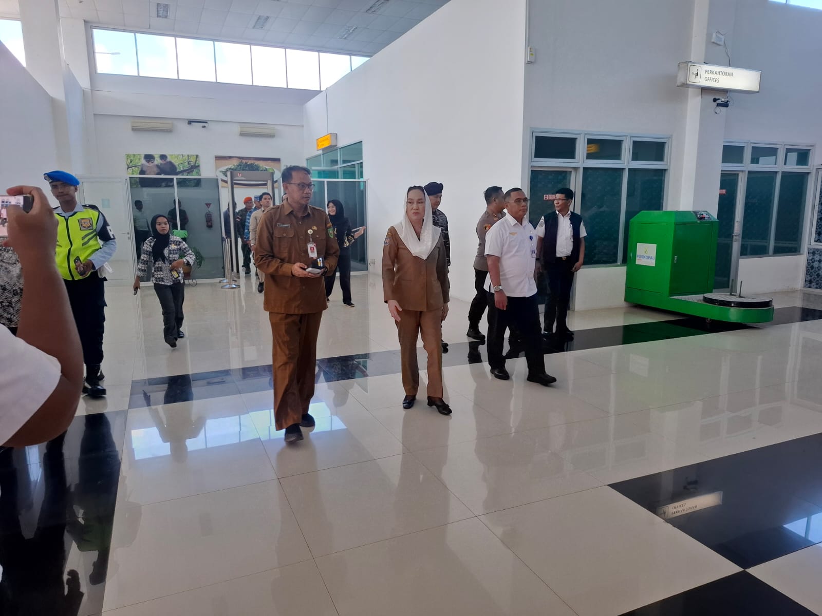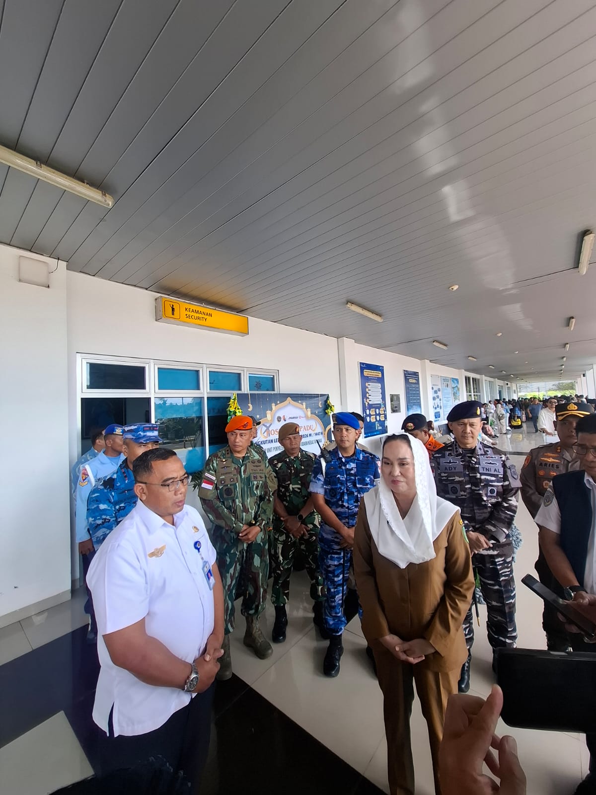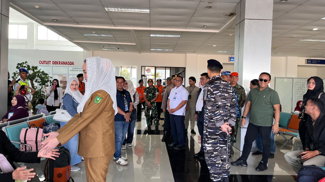 Bupati Cen Sui Lan di dampingi unsur Forum Komunikasi Pimpinan Daerah (Forkopimda) Kabupaten Natuna bersama instansi terkait melakukan pengecekan ruang tunggu dan ruang kedatangan di terminal bandara untuk memastikan langsung kesiapan sarana dan prasarana serta optimalisasi pelayanan kepada masyarakat menjelang puncak arus mudik.