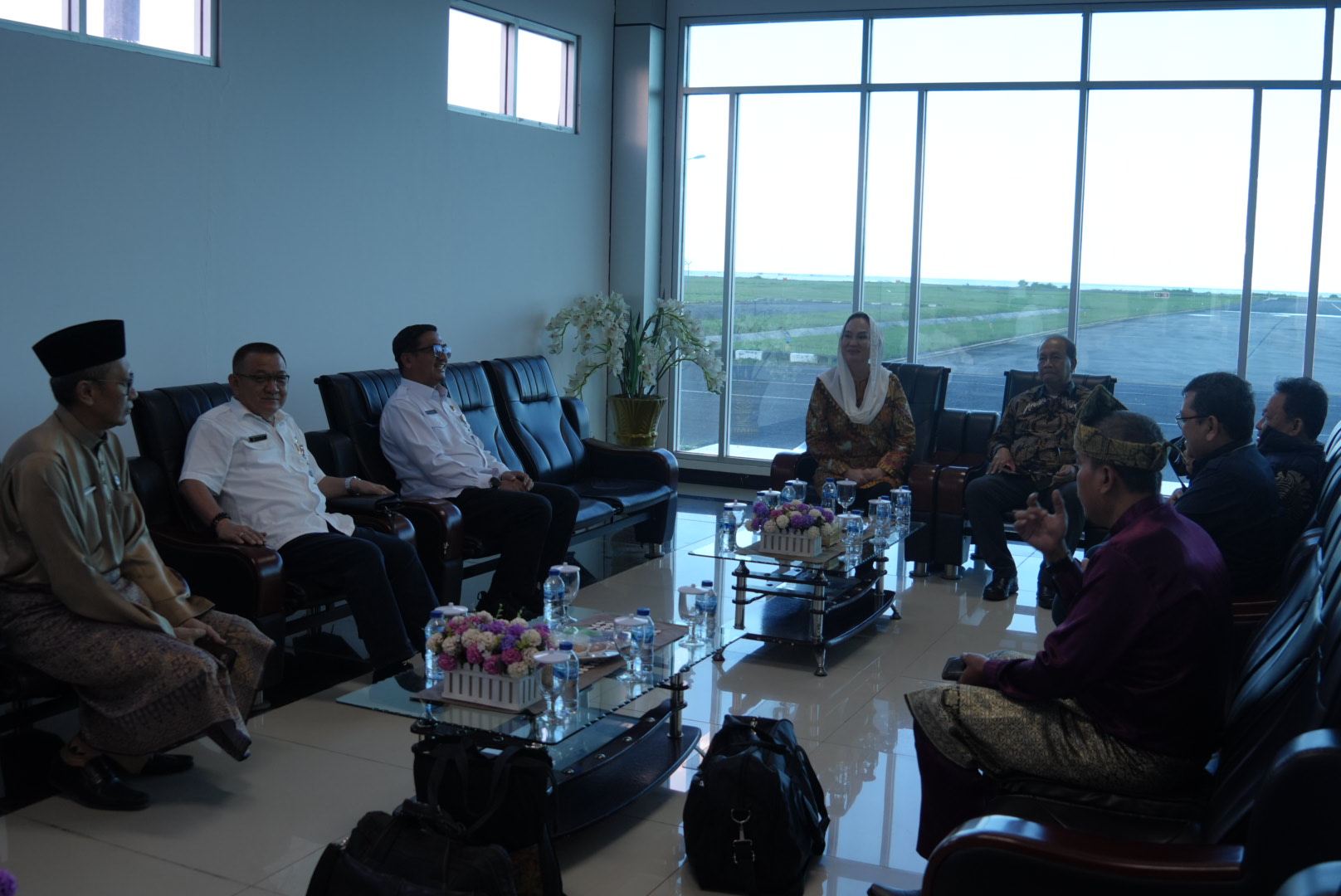 (wartaKominfo) Sekretaris Daerah Kabupaten Natuna, H. Boy Wijanarko Varianto, bersama sejumlah Kepala Organisasi Perangkat Daerah (OPD) menyambut kedatangan Sekretaris Kementerian Usaha Mikro, Kecil dan Menengah (UMKM) Republik Indonesia, Arif Rahman Hakim beserta rombongan di Ruang Tunggu VIP Lanud Raden Sadjad, Ranai, pada Jumat (19/9).