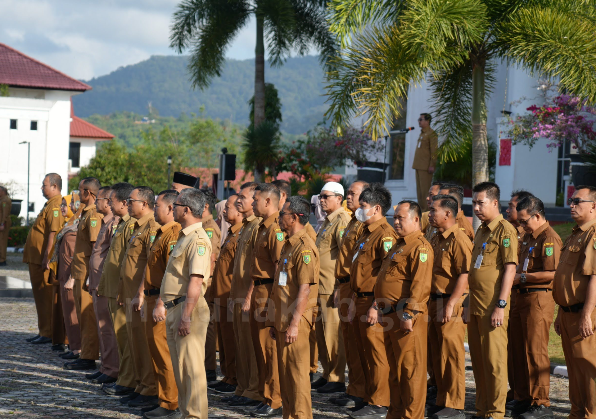 Apel pagi yang dipusatkan di Halaman Kantor Bupati Natuna Bukit Arai ini diwajibkan bagi seluruh Organisasi Perangkat Daerah (OPD) yang berkantor di dalam kompleks perkantoran tersebut. Sementara itu, bagi OPD yang berada di luar kompleks tetap diwajibkan melaksanakan apel pagi secara mandiri di kantor masing-masing.