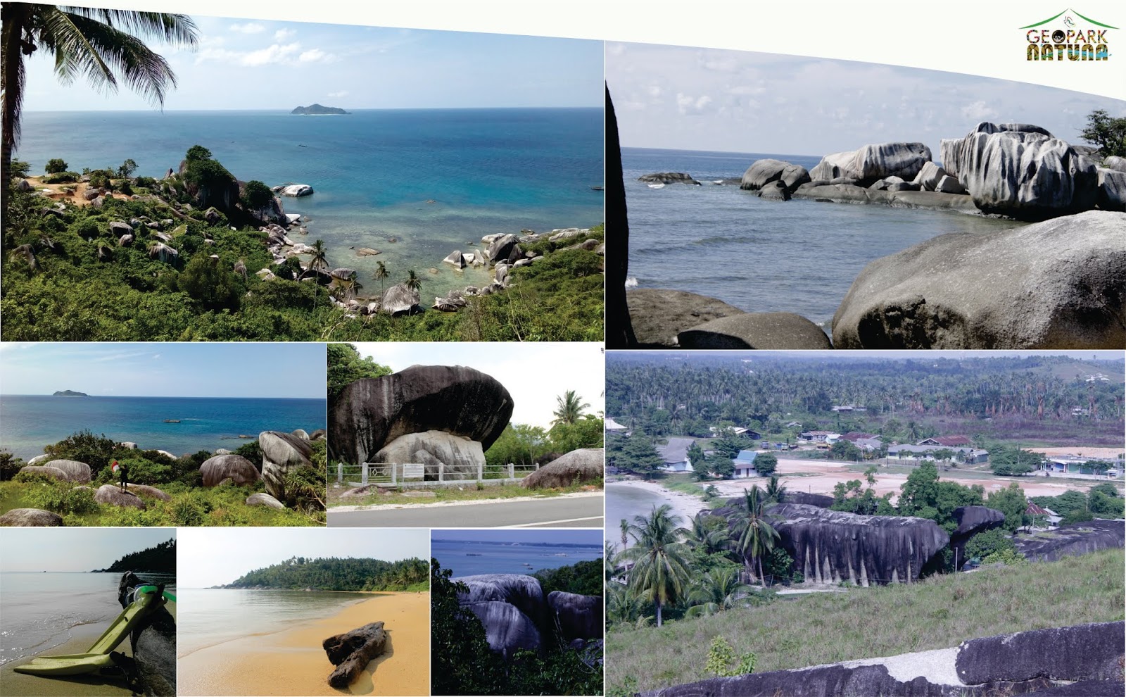 Nah menurut pengertian diatas, suatu kawasan bisa disebut sebagai geopark jika didalamnya terdapat keanekaragaman geologi, biologi dan budaya serta luasan area yang cukup untuk pembangunan ekonomi lokal serta mengajak peran serta masyarakat sekitar untuk sama-sama saling menjaga dan mendukung kelestarian alam yang ada di sekitar situs Geopark. Luasan area yang dimiliki oleh Natuna sudah memenuhi syarat untuk ditetapkannya sebagai Geopark Nasional, ia terbentang dari bagian selatan hingga ke utara dan menutupi hampir separuh sisi timur pulau Bunguran. Batuan granit merupakan daya tarik utama dari situs Geopark Natuna. Konon usia batuan granit beragam ukuran ini sudah mencapai ratusan juta tahun, sangat menarik untuk diteliti bukan? Nah kali ini saya akan ajak kalian untuk “berkenalan dengan geosite-geosite yang -sejauh ini- masuk dalam Geopark Natuna. Kita mulai “virtual tour” kita ini dari site yang terdekat dari bandara dan kota, asumsi saja kita adalah para wisatawan atau para peneliti dan “tukang” konservasi yang berkunjung ke Geopark Natuna.
